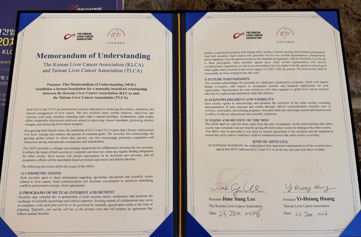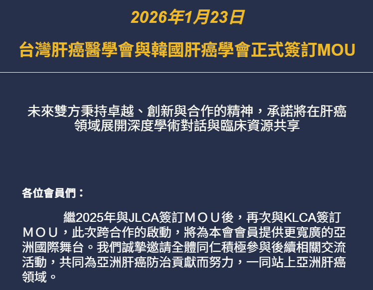 「邁向新里程碑」台灣肝癌醫學會與韓國肝癌醫學會正式簽訂MOU